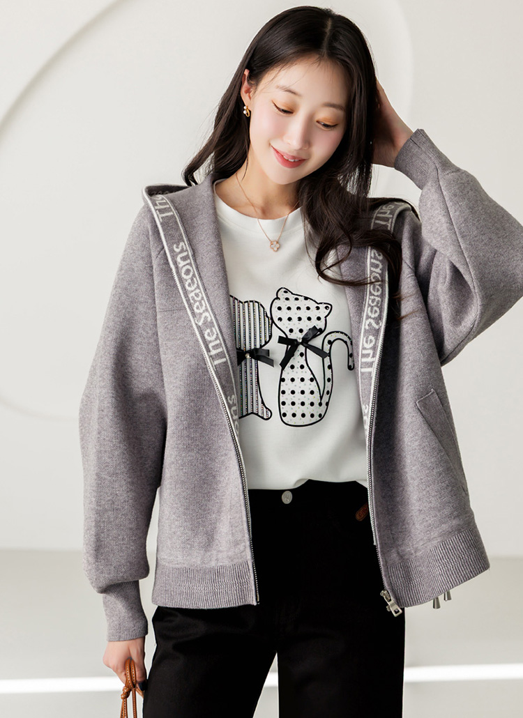 편안함과 세련된 포인트를 동시에 담아낸 니트 후드 집업 가디건이에요