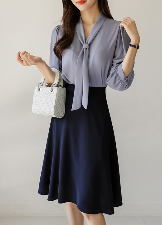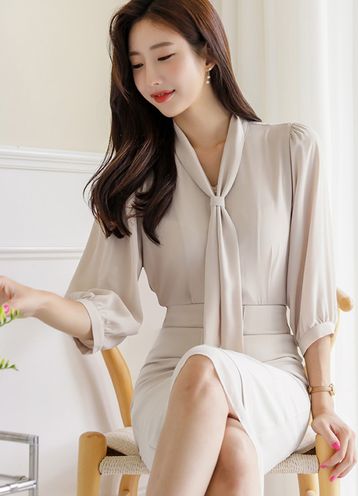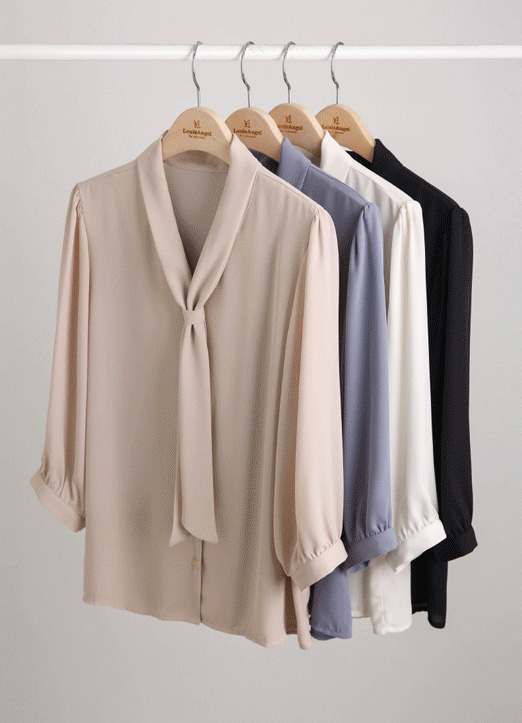 타이넥과 셔링소매디테일을 잘 살려주며,