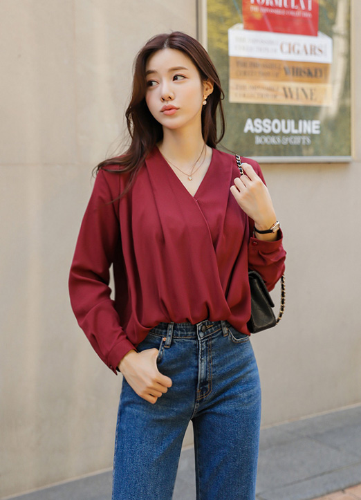 핀턱으로 셔링을 잡아준 랩디자인의 블라우스