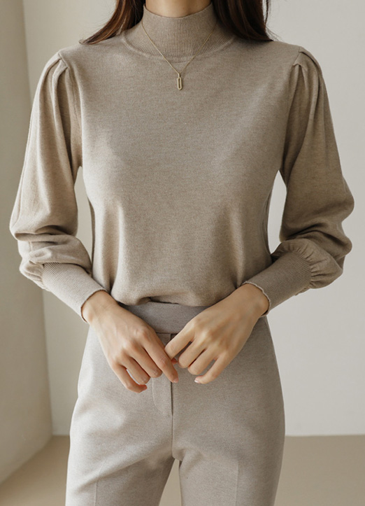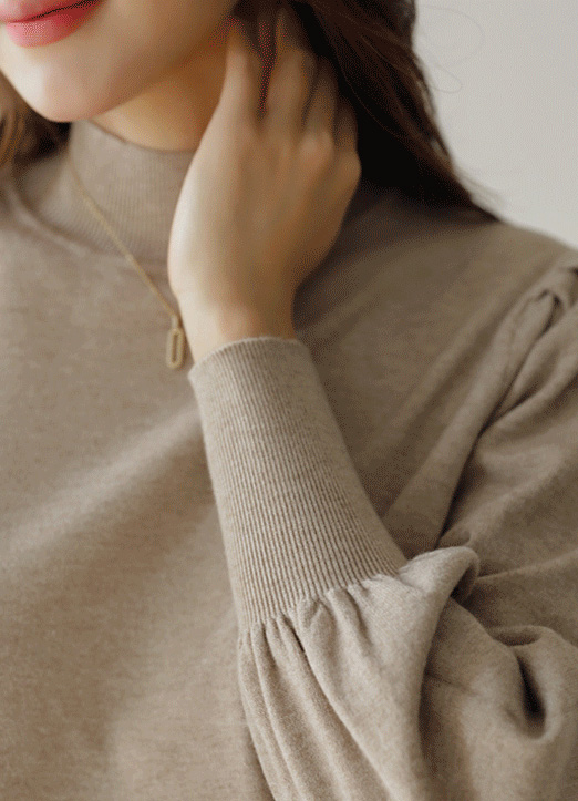 [基本设计加上肩部褶皱,女人味UP~ 以柔软的触感,适合日常穿着的半高领T恤!宽松的版型遮挡赘肉,适合随意的穿着。袖子宽的罗纹松紧设计,塑造出隐隐的干练轮廓。]