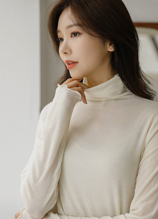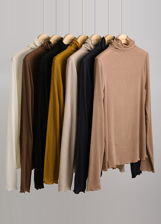 [柔软~ 接触皮肤的手感,演绎出优雅的形状,领口开始随着身体曲线,形成自然的褶皱,适合每天穿着的宝贝♥ 柔软的面料,收到的话200%满意的高领T恤~!!]