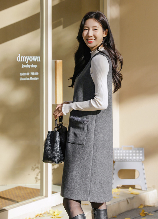 [休闲的版型,腰部线条显得苗条,稍微到膝盖上面的长度,可随意的穿着,两侧口袋里加入了貂皮设计,有保暖的感觉,适合作为点缀。 与高领T恤,和针织衫层叠着也很可爱!]