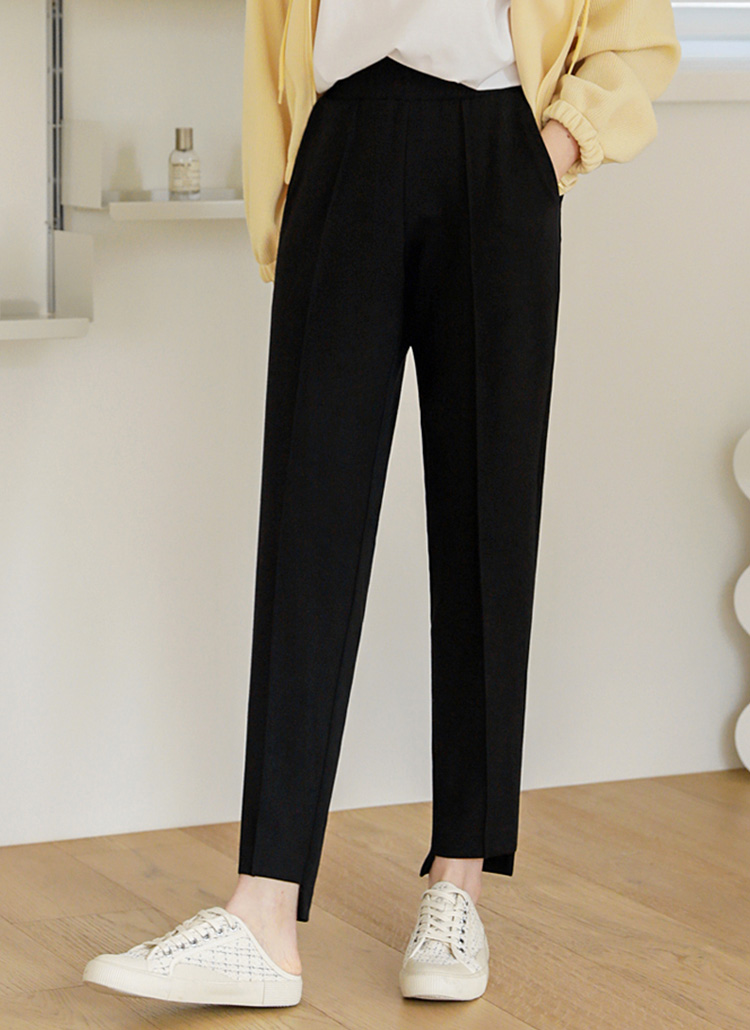 [适合作为日常装穿着的松紧带开叉裤子。下垂的一字型遮住赘肉,穿起来没有负担。底端不对称设计,显得苗条。由简约的颜色构成,很好穿的单品!]
