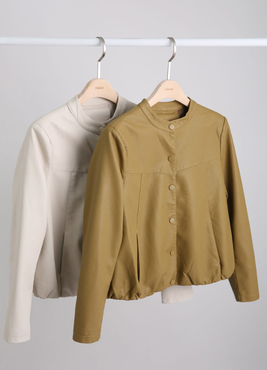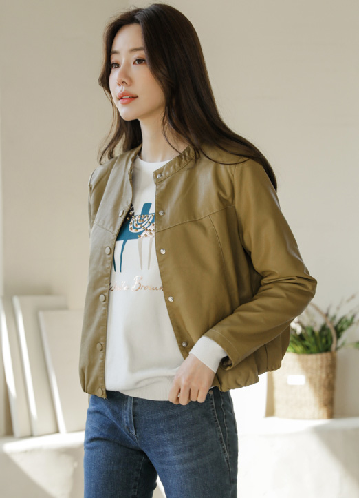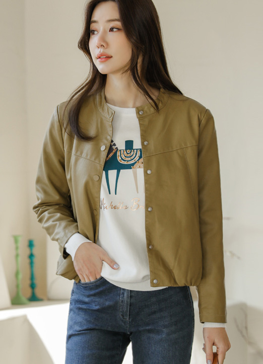 [日常地~帅气地皮夹克!~ 到骨盆为止的短衣长感,有显腿线长的效果。用宽松的版型遮住线条,可以随意舒适地穿着。底端是松紧带设计,适合与任何上衣层叠穿着。]