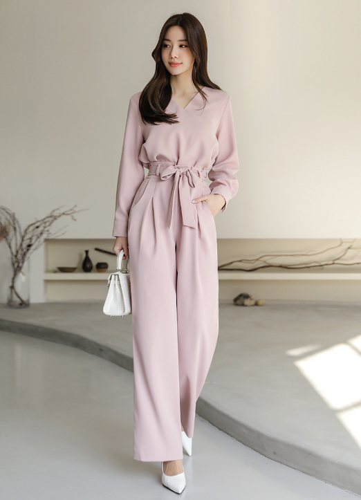 허리에 끈으로 리본연출을 해주어 포인트룩으로