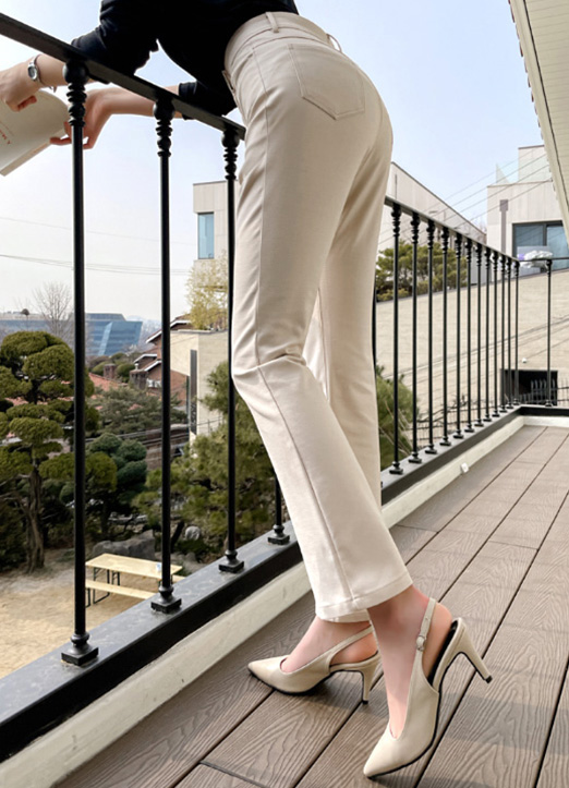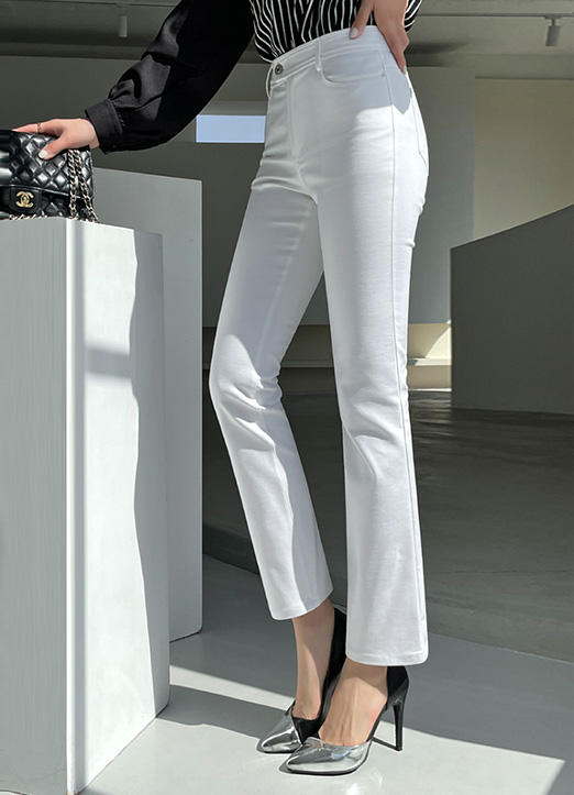 [显得腿长的半微喇修身长裤,既干练又有女人味的版型,抓住腹部和到骨盆的设计,适合多种装扮的日常裤,舒适的穿着感,长时间穿着也毫无负担。]