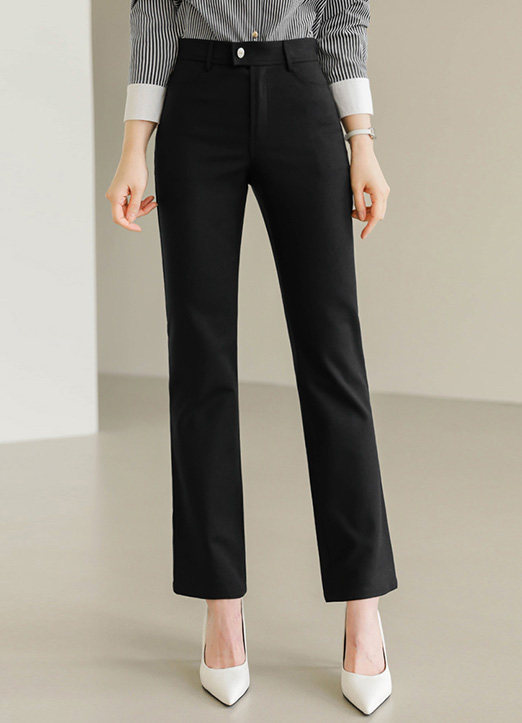 [显得腿长的半微喇修身长裤,既干练又有女人味的版型,抓住腹部和到骨盆的设计,适合多种装扮的日常裤,舒适的穿着感,长时间穿着也毫无负担。]