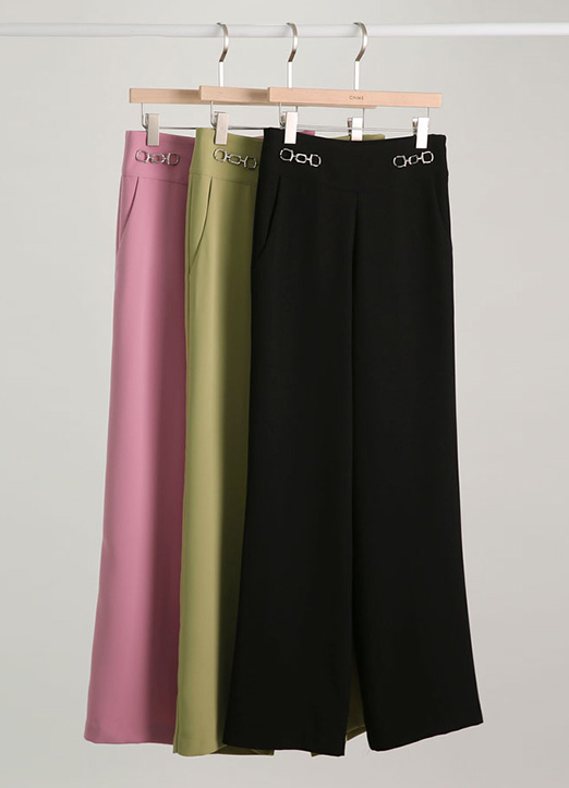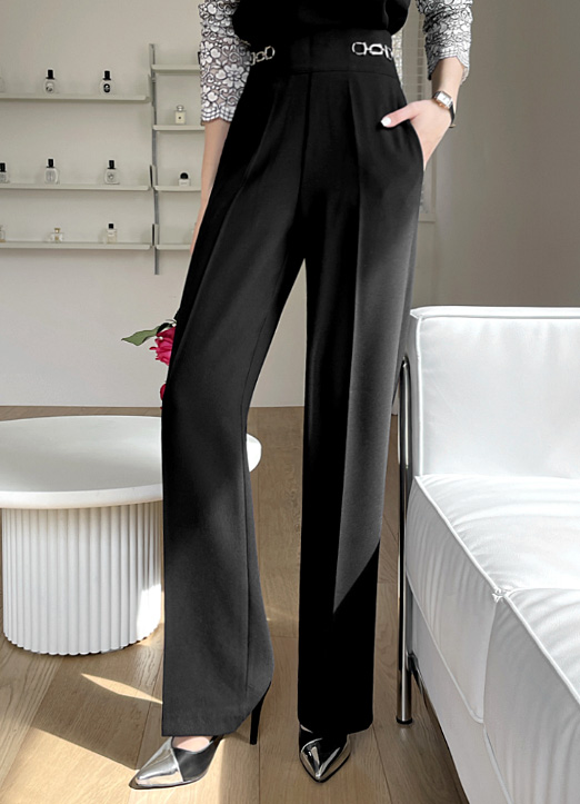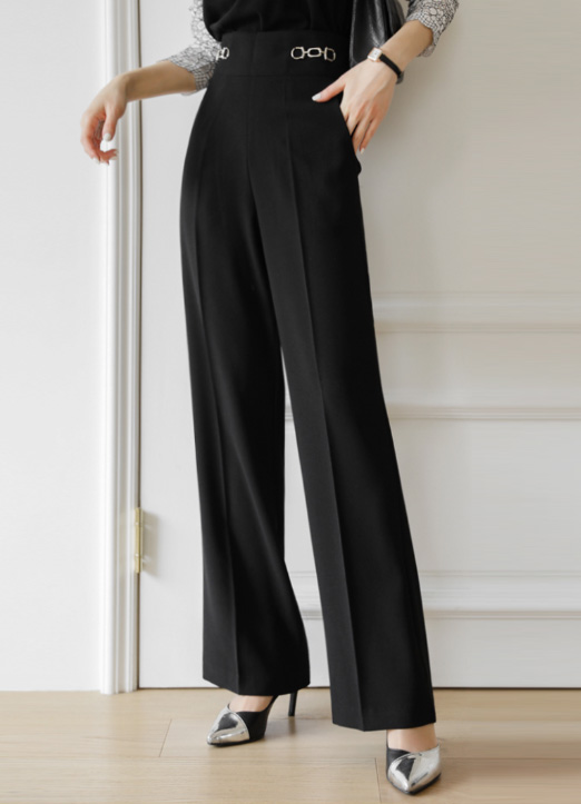 [一字型垂下来的腿部线条,两侧有金章链条装饰,让腰部线条显得更加苗条,隐隐有光泽感的材质,半宽松款式,不会太臃肿,高腰设计显得腿更长!]