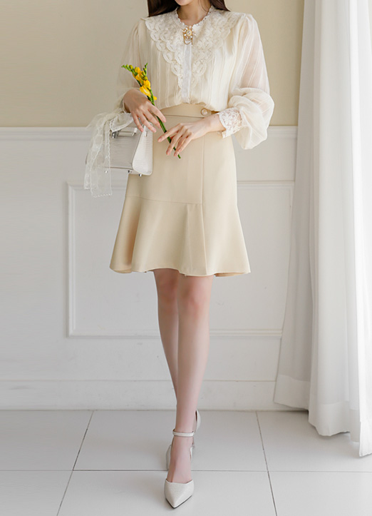 더욱 사랑스러운 실루엣을 연출하는 밑단 플레어 스커트에요