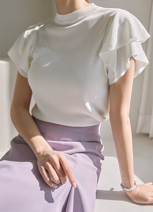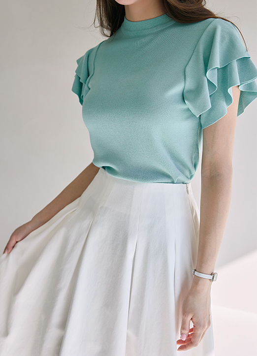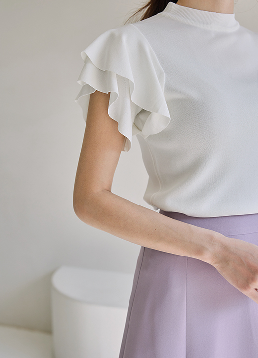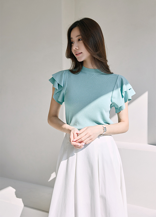 [可爱魅力的针织衫,适合夏季单件穿着。袖子双层荷叶边很有魅力的风格,充满女人味的设计~^ 可以演绎出多种风格。]