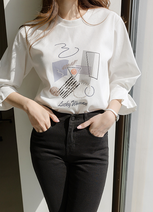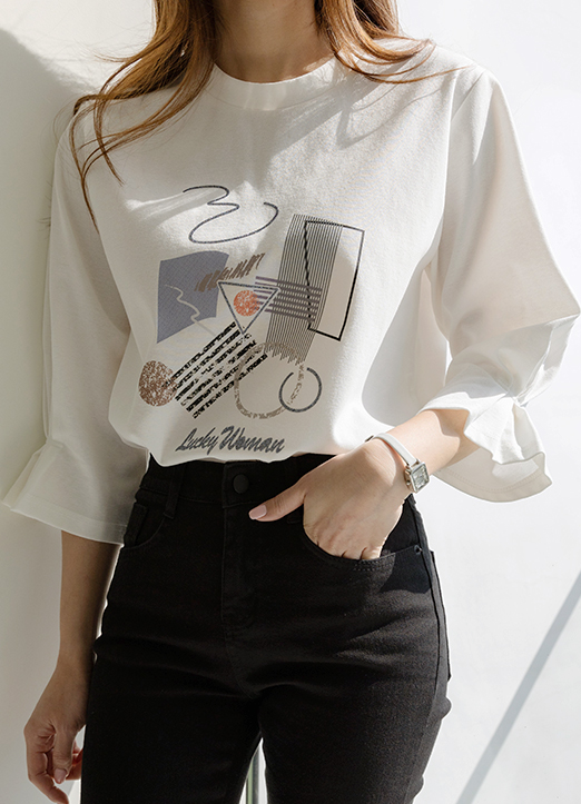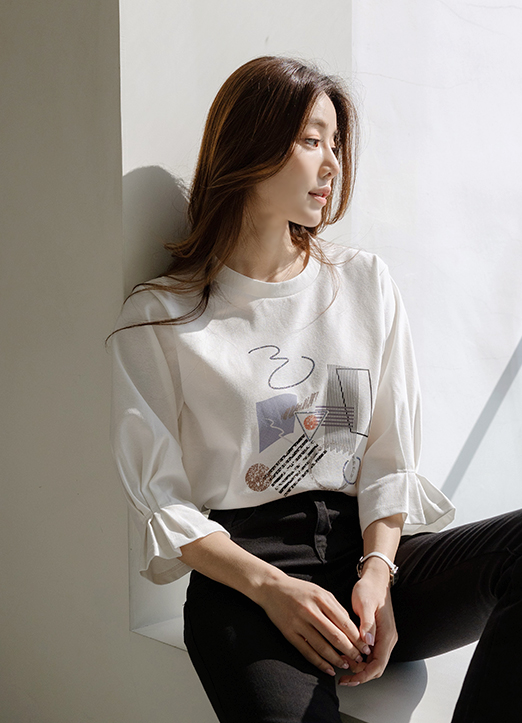 너무나 사랑스러운 핏과 유니크한 드로잉 나염이 돋보이는