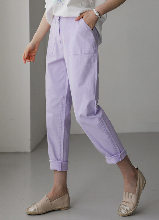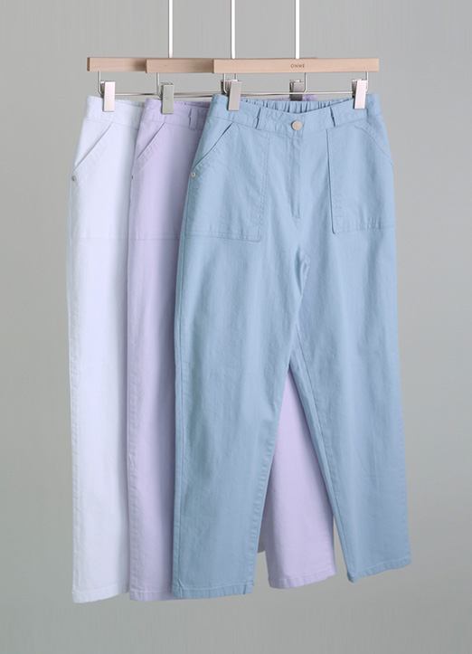 뒷밴딩 배기핏 컬러 코튼팬츠