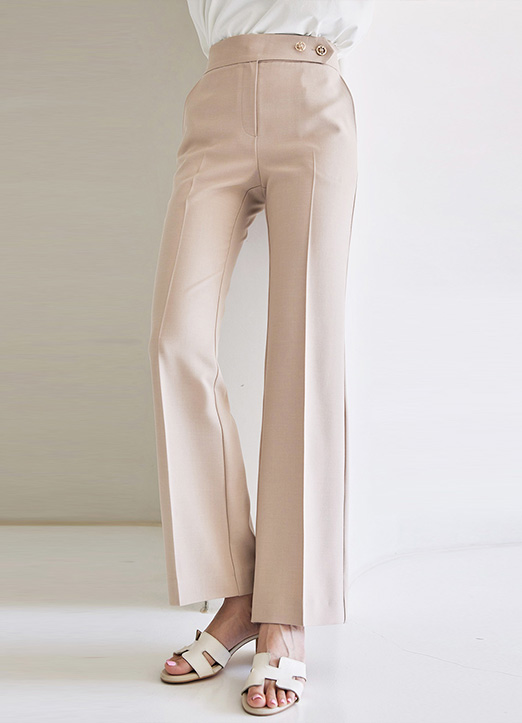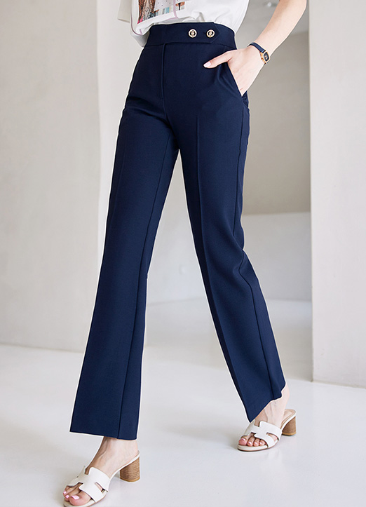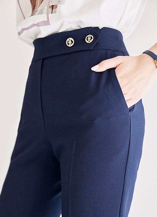 [裤腰部分金装双扣是亮点,奢华而不夸张的版型,两侧口袋增添了实用性,线条版型,非常干练,弹性很好,给人一种没穿过的舒适感!完美线条的宽松裤。]