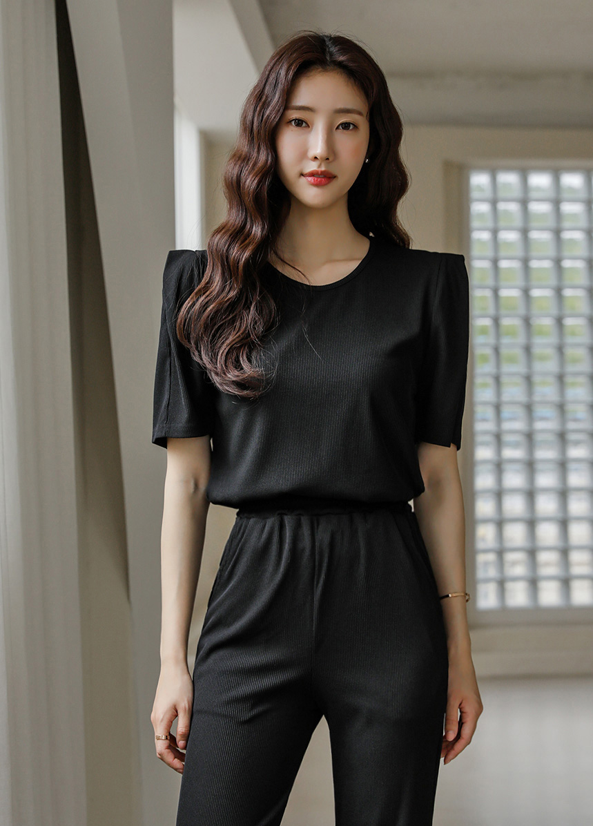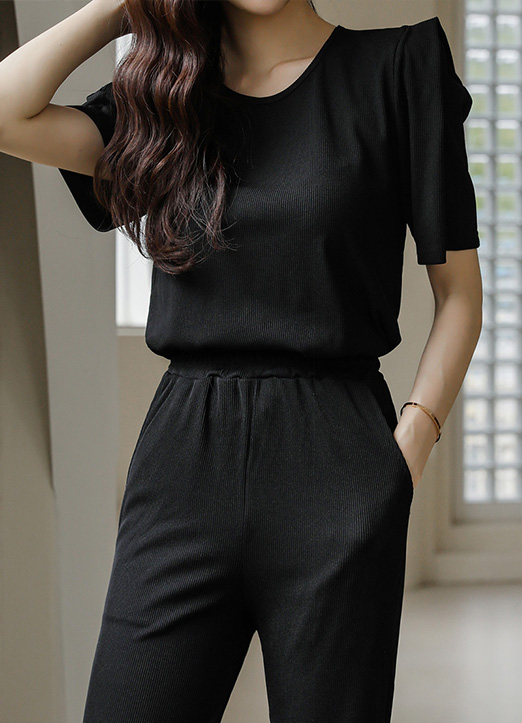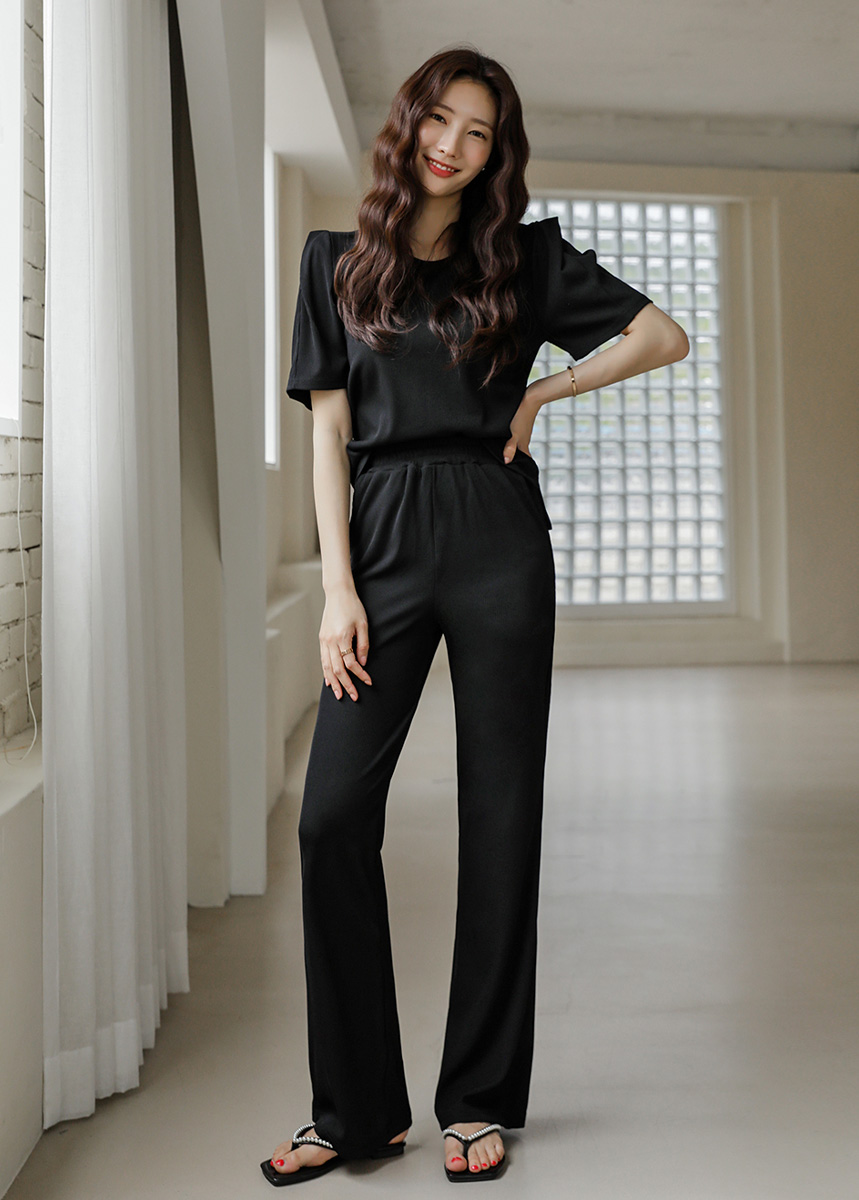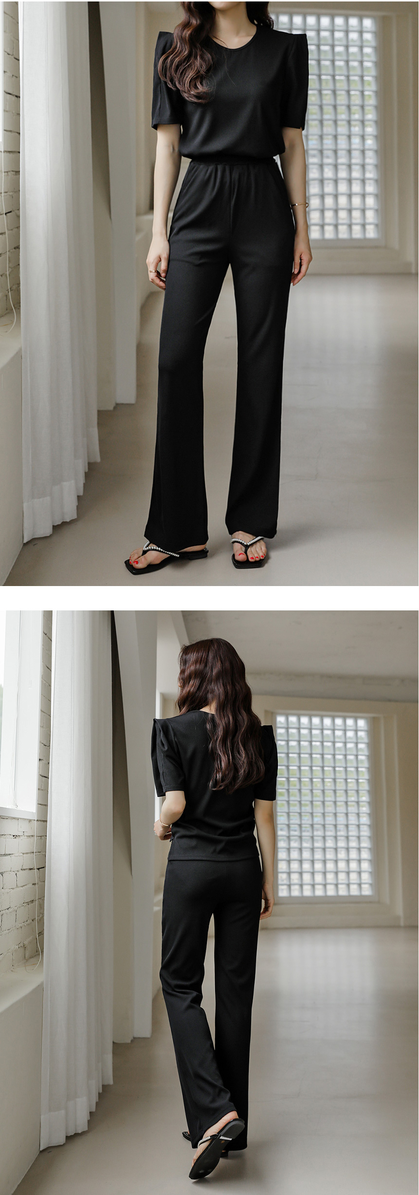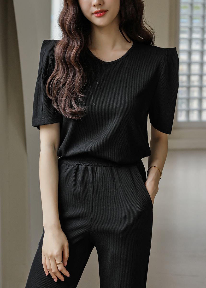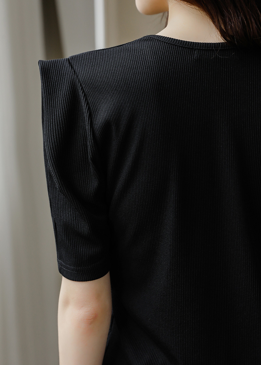 퍼프 부분이 포인트되는 심플한 티셔츠와