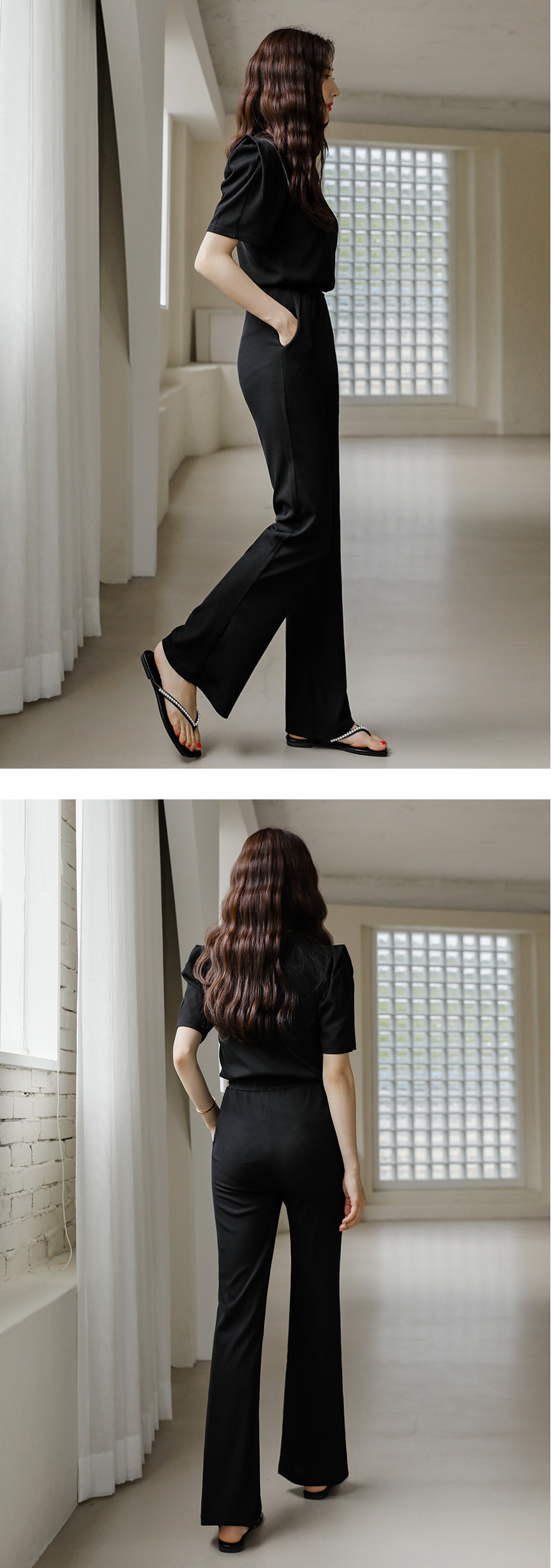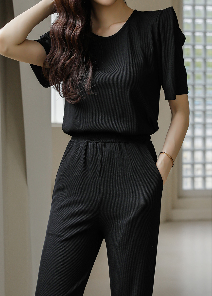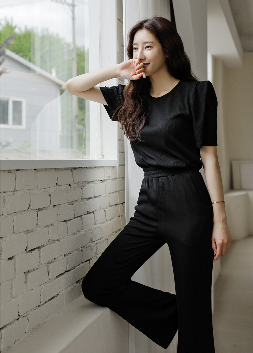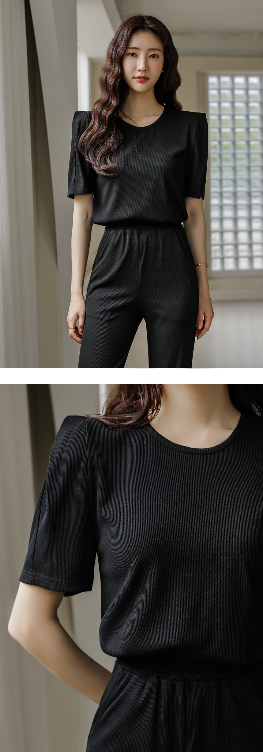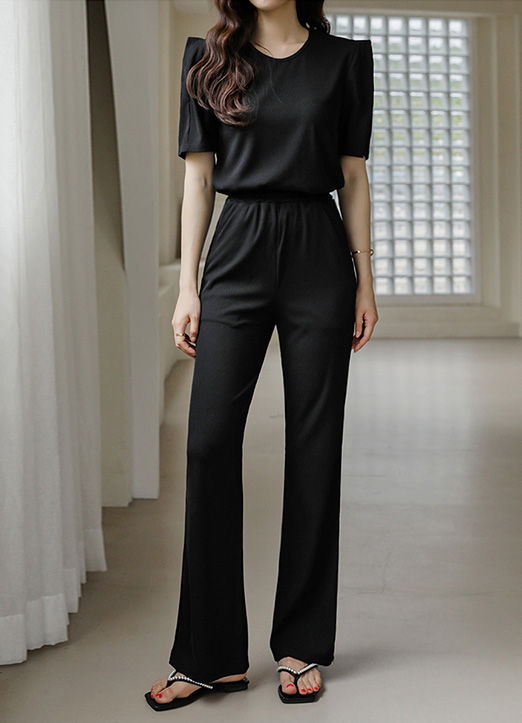 퍼프 부분이 포인트되는 심플한 티셔츠와