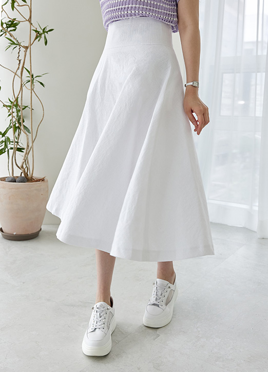 넓고 풍성하게 퍼지는 플레어 라인으로