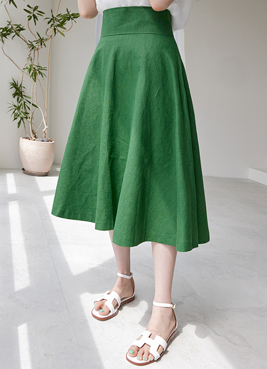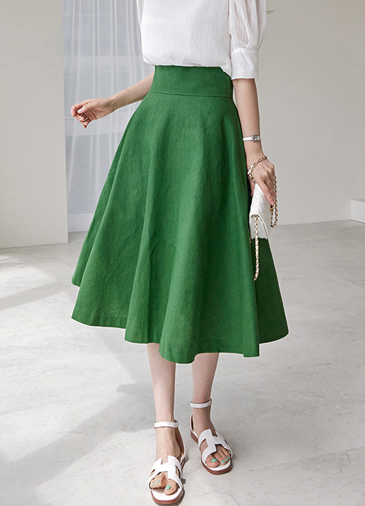 [从简约的颜色到火热的颜色,适合夏季搭配的非常漂亮的长裙:) 以宽大而丰盛的喇叭线条,亚麻的高品质材质,谁都可以随意的穿着!]