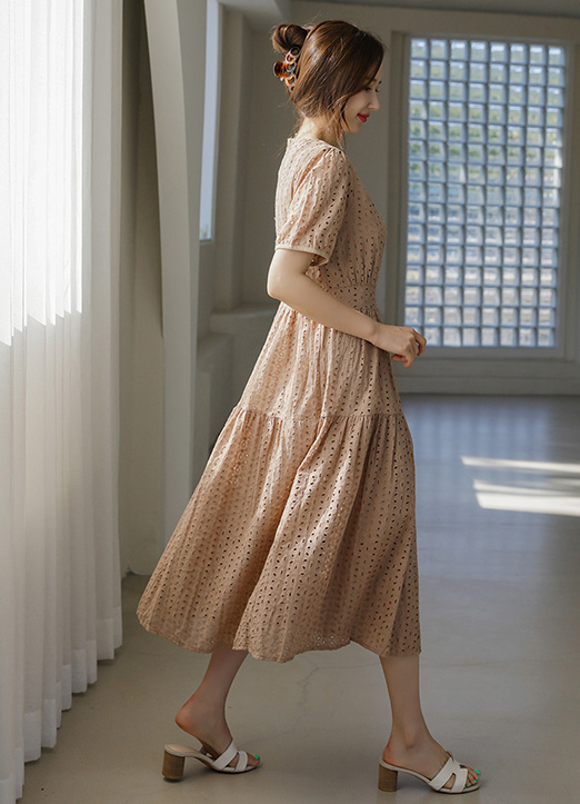 [淑女又高档的镂空蕾丝制作,全部用碎花镂空蕾丝面料制作,演绎浪漫情调的连衣裙,不仅是日常装,作为度假装也毫不逊色的魅力满分单品。]
