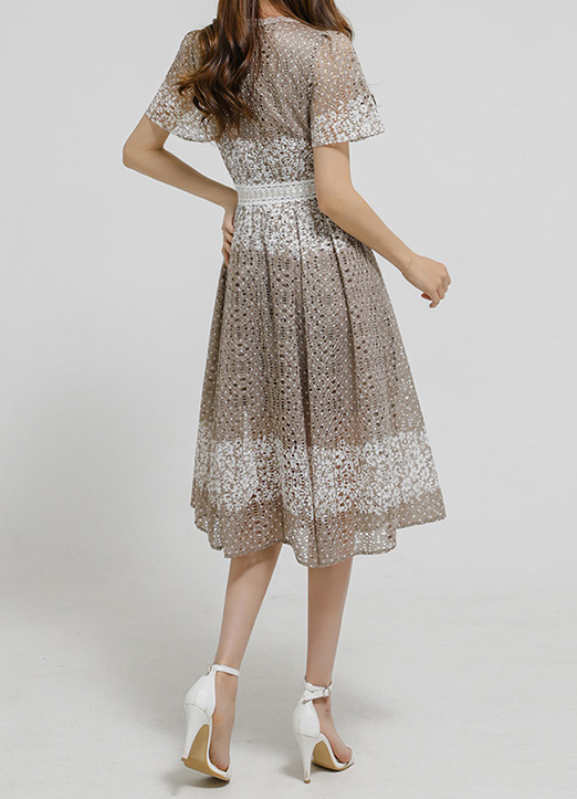 [民族风情调的图案,带有刺绣蕾丝的感觉,上面圆点和迷你花漂亮地搭配着,演绎出丰盛的A字型轮廓,展现高档又女性化的美丽氛围。]