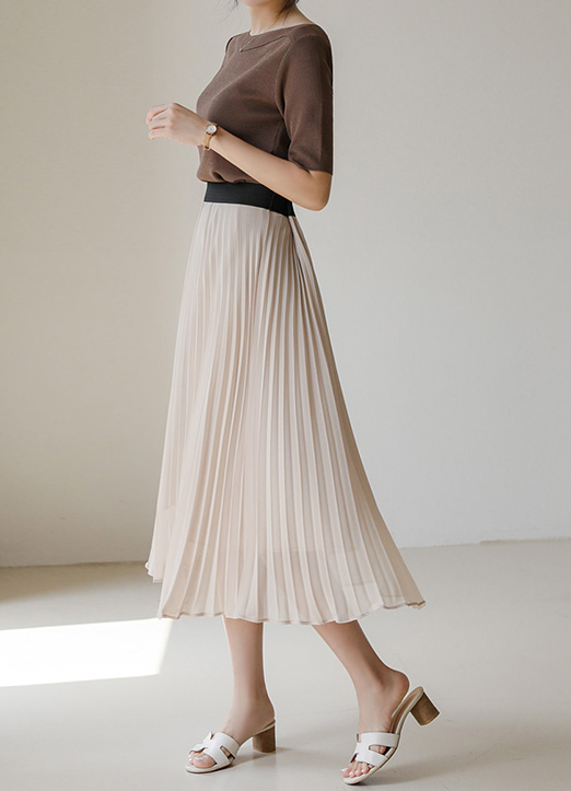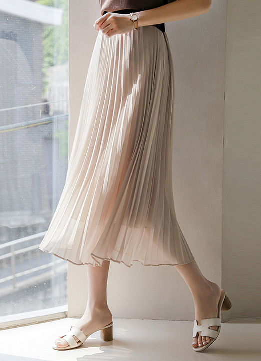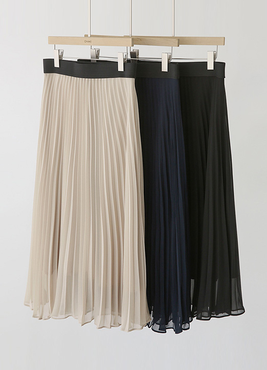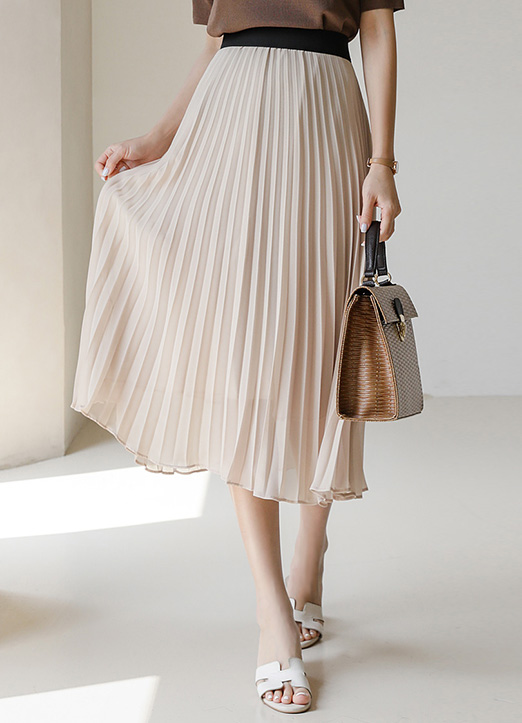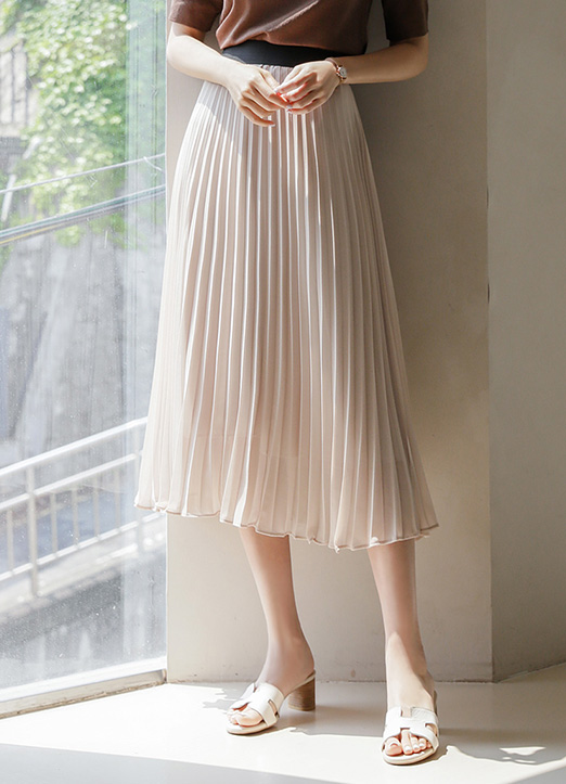 쉬폰 플리츠 미디 플레어 밴딩 스커트:)