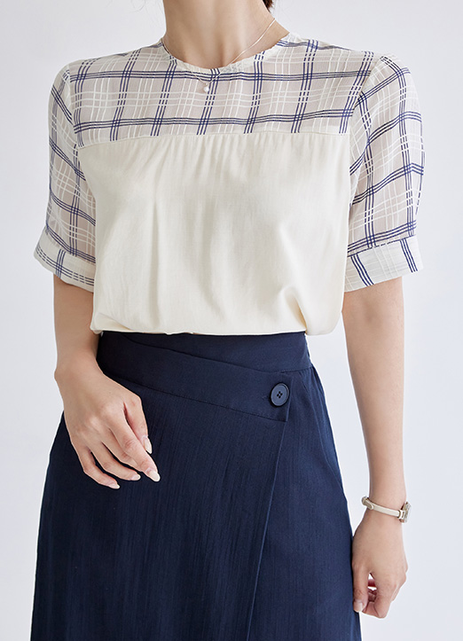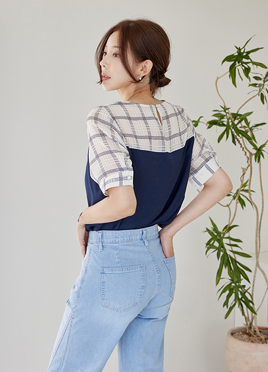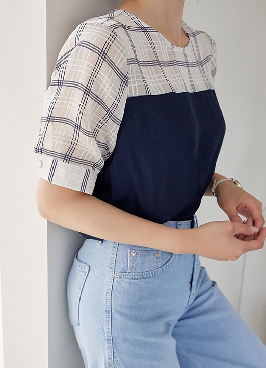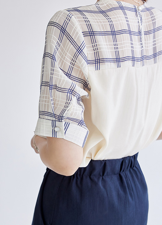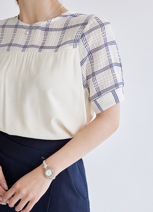 어깨와 소매라인 체크가 배색되어 있는