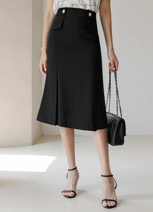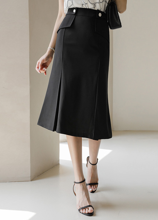 사이드 비조 핀턱 미디 머메이드 스커트~!