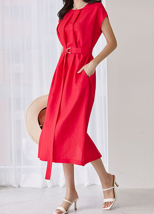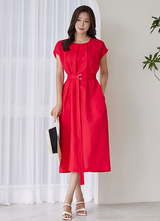 린넨 핀턱 벨티드 롱 원피스 추천드려요 :)