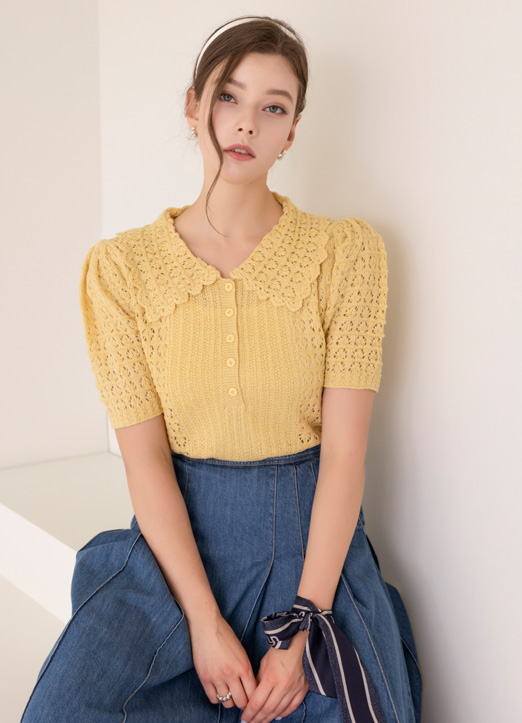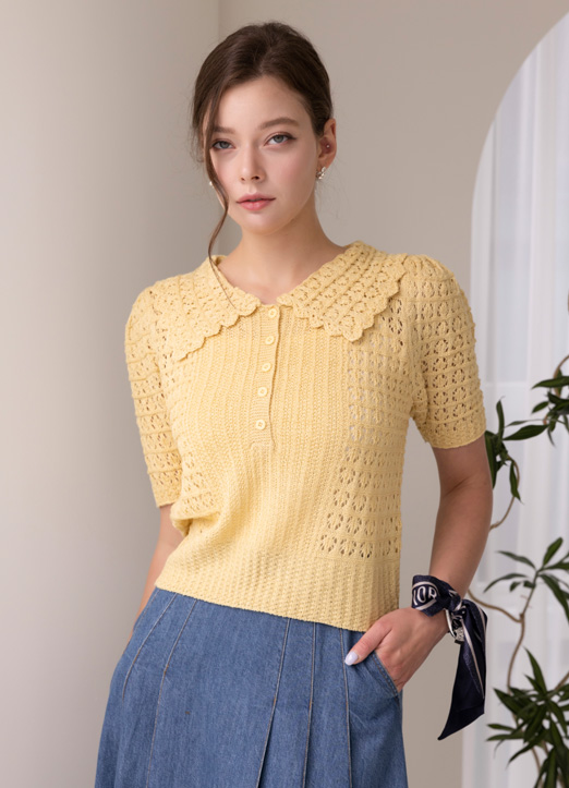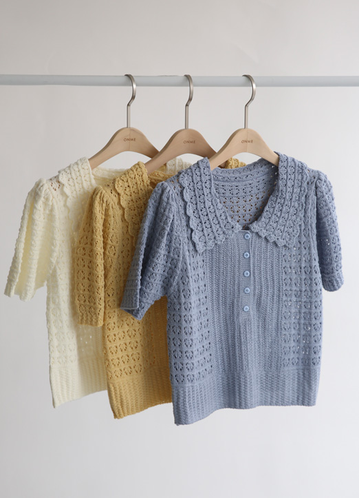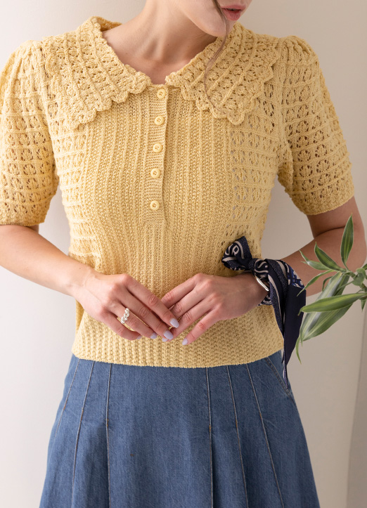 레트로 쏜뜨개 반팔 니트 티셔츠로