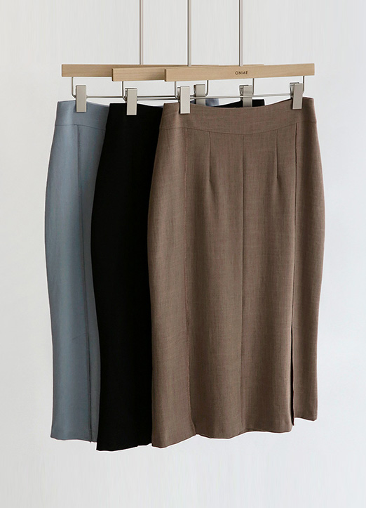 밑단에 트임이 있어 편안하게 입기 좋은 머메이드 라인 스커트에요