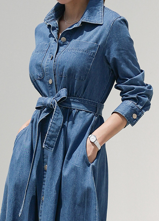 엘리사 데님 롱 벨트 셔츠 원피스에요:)
