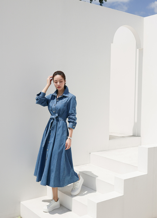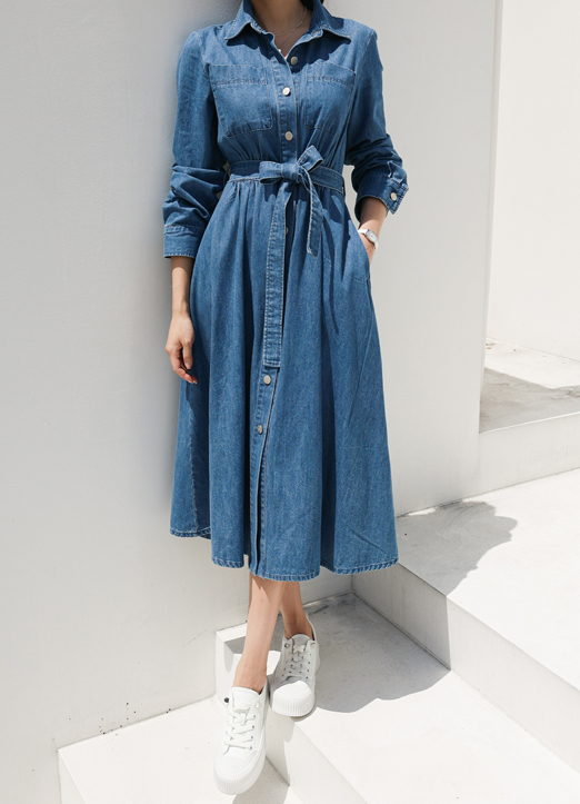 크게 유행없는 셔츠 데님 원피스로