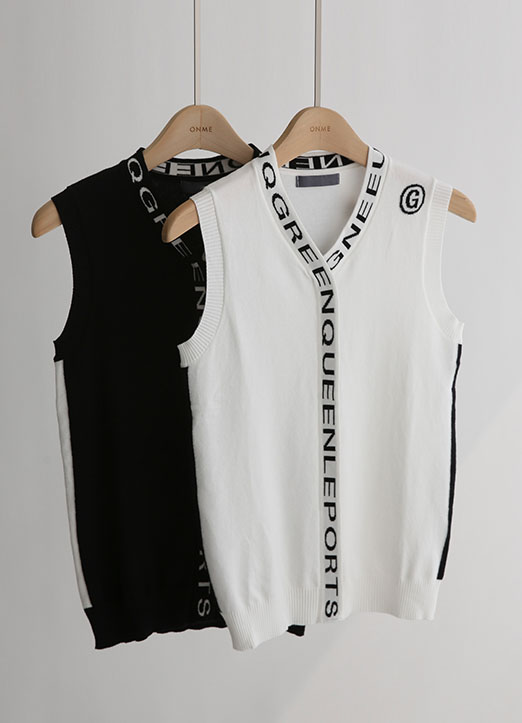[QoG]V领文字细节针织马甲