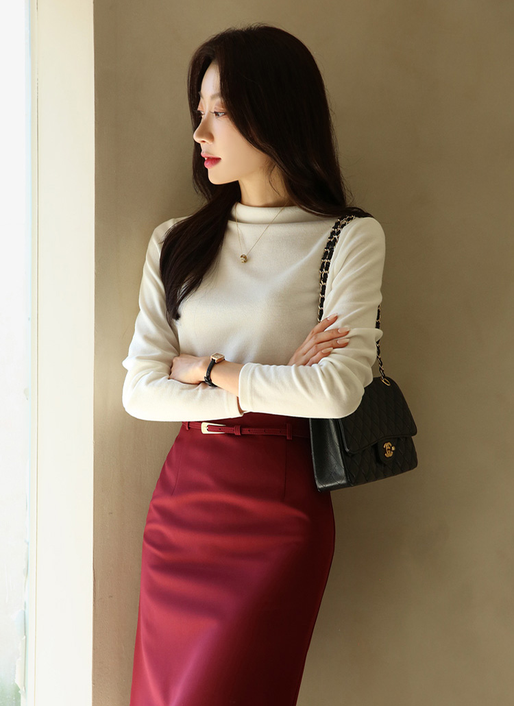 넥라인을 살짝 감싸주는 반목 디자인이라 답답해 보이지 않고