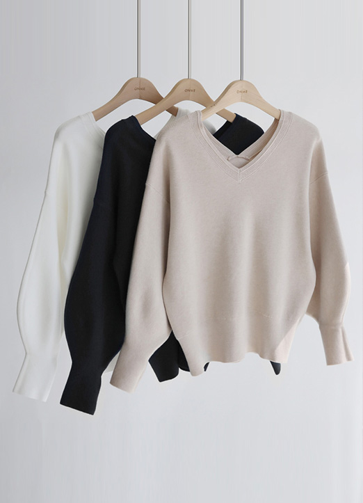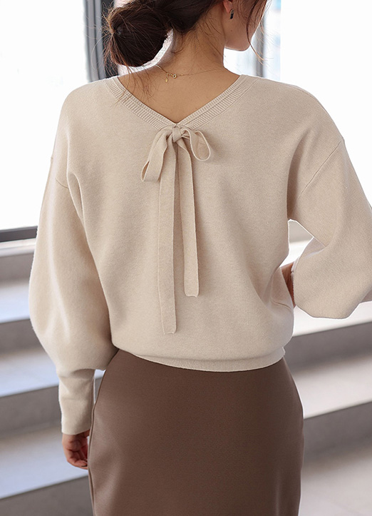 뒷리본 양V 퍼프소매 니트에요:)