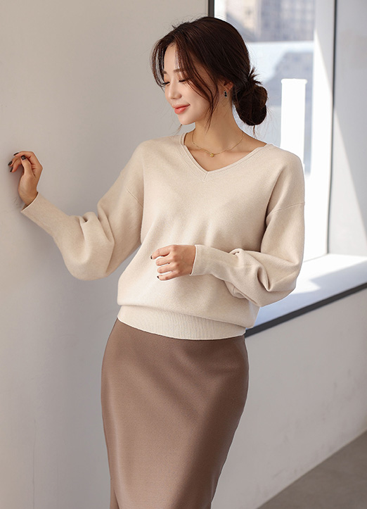 여리여리한 목선이 연출되는 브이넥 디자인,