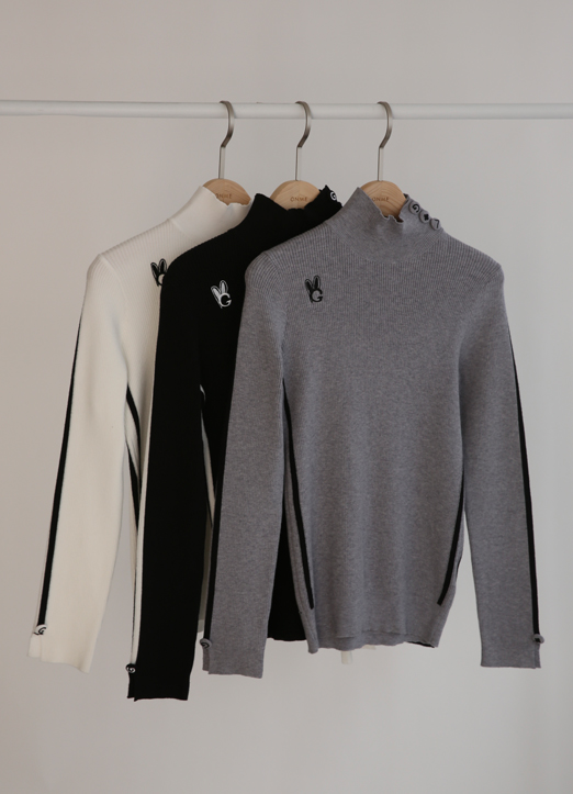 [QoG]高尔夫半高领兔子刺绣针织衫