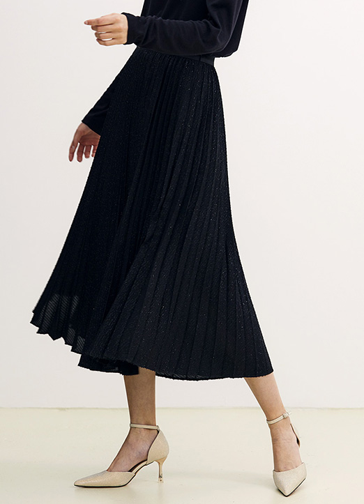 [THE ONME] 长款亮片百褶裙