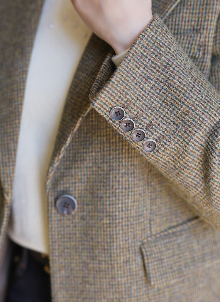 [THE ONME] 可爱温和羊毛混纺格子修身夹克