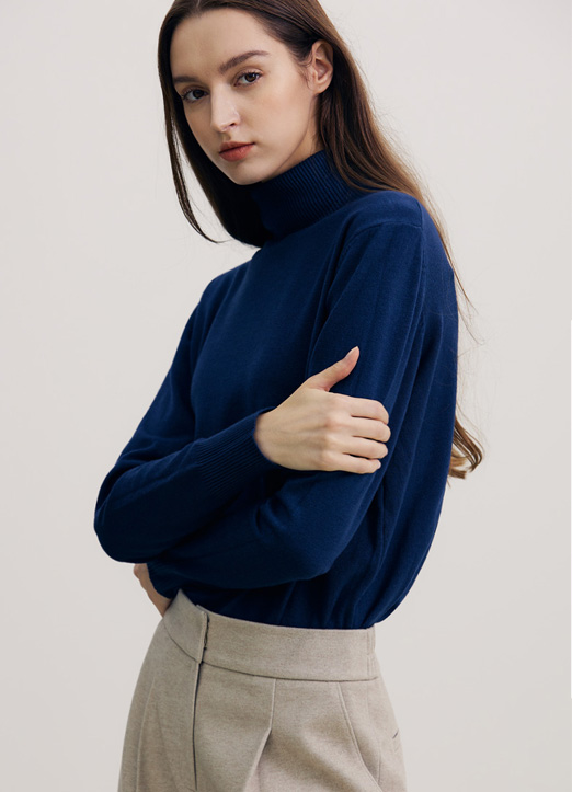 [THE ONME] 简约竖条纹高领针织衫