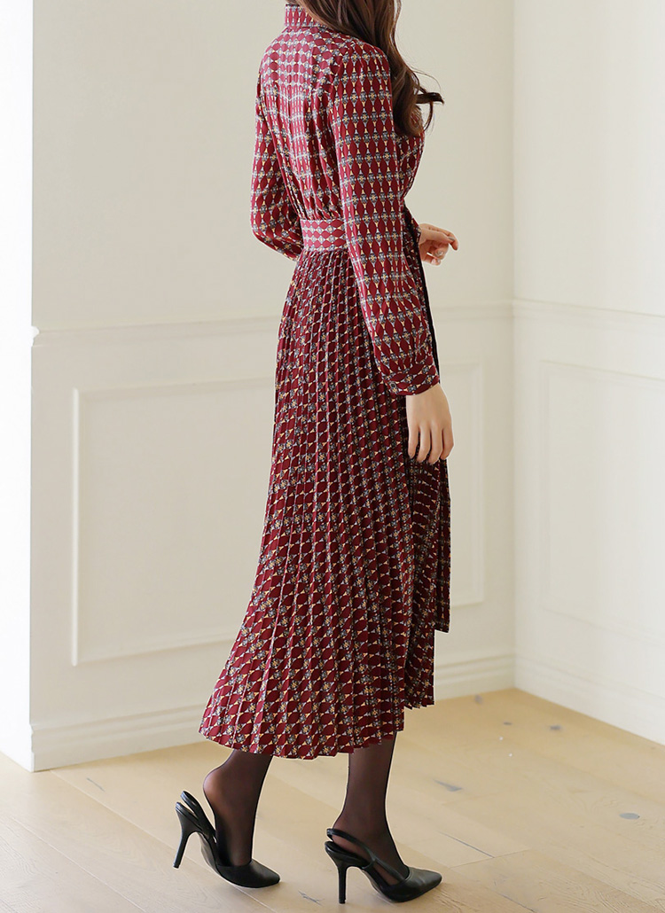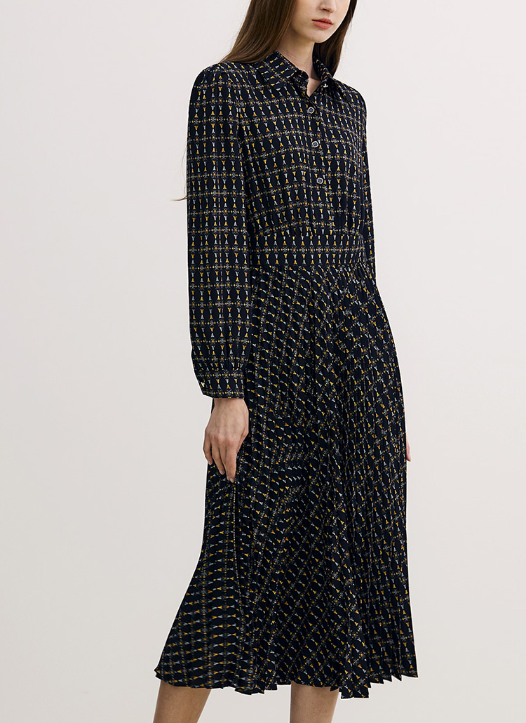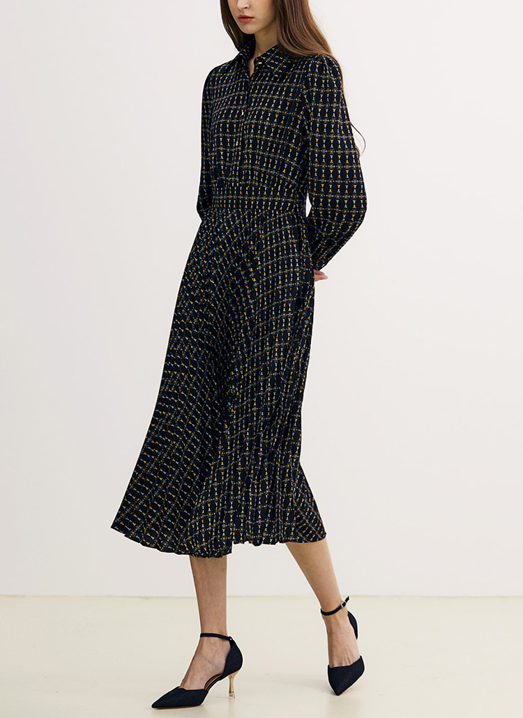 에스닉한 패턴이 돋보이는 마리에 플리츠 드레스로
