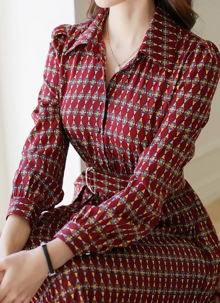 [THE ONME] 民族风图案百褶腰带连衣裙