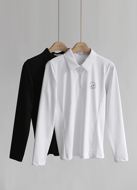 [QoG] 高尔夫功能性背面英文印染领子长袖T恤