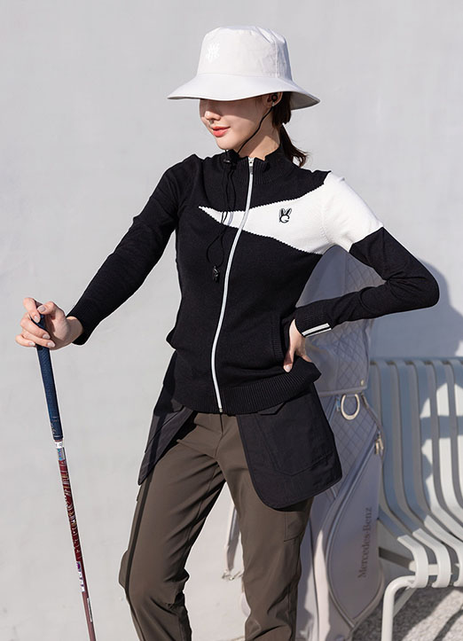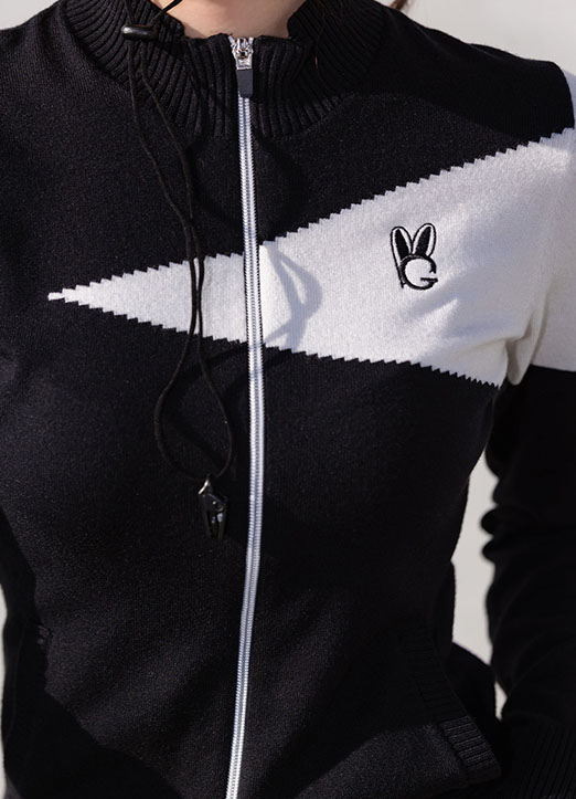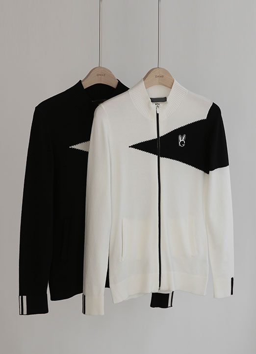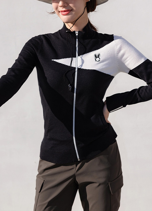 [QoG] 兔子刺绣配色拉链针织开衫