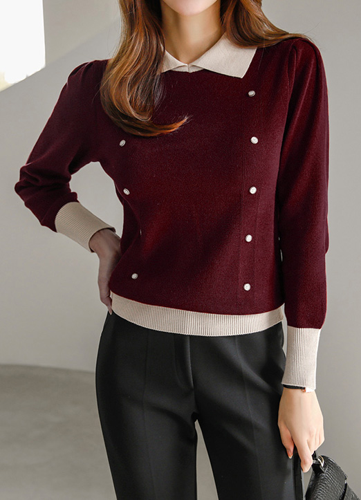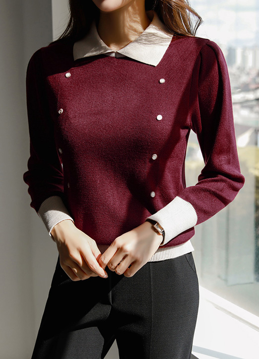 카라와 소맷단,밑단에 배색 디테일을 넣어
