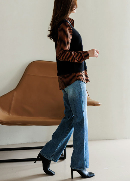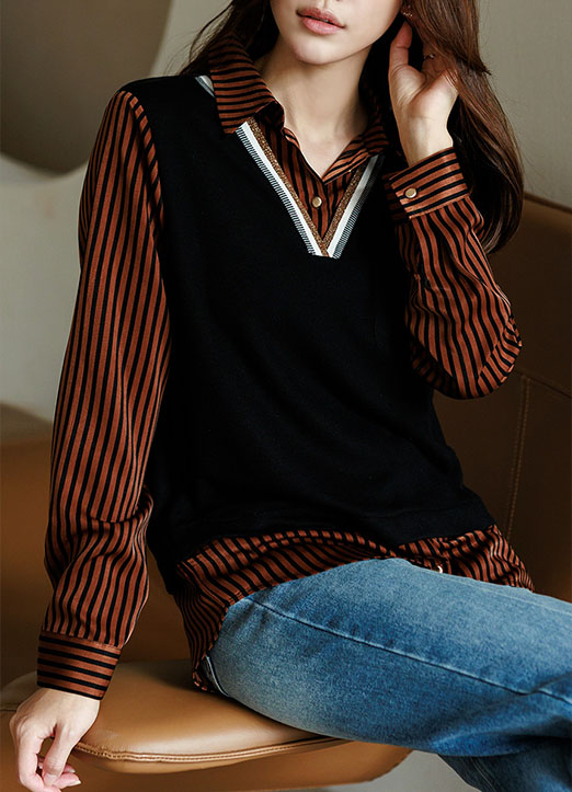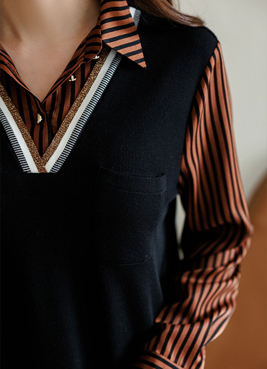 배색 스트라이프 레이어드 조끼 셔츠 블라우스에요