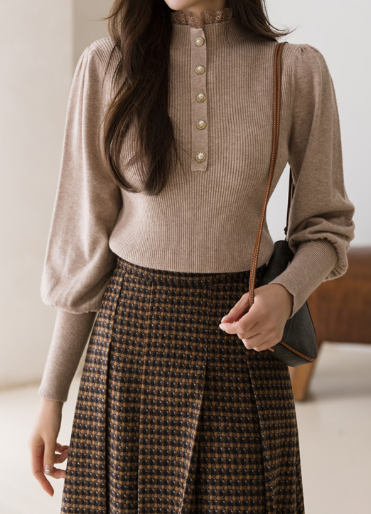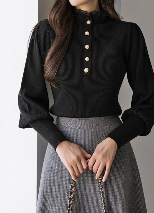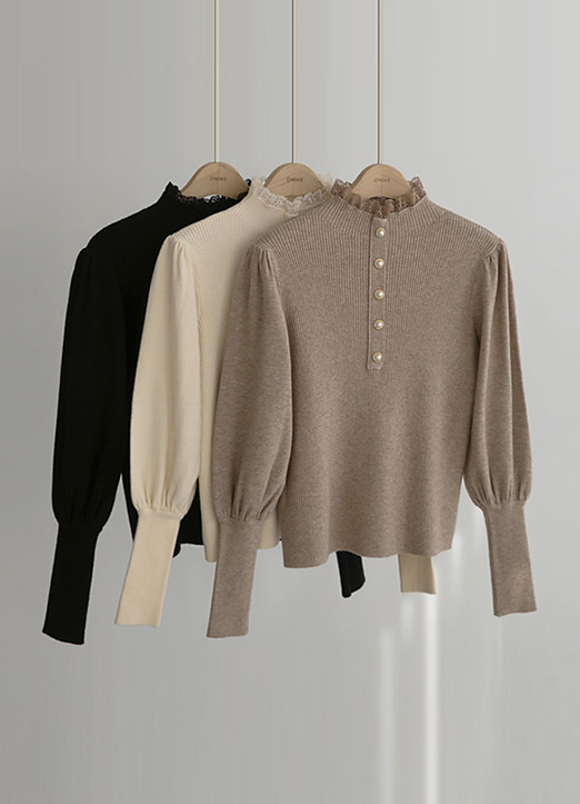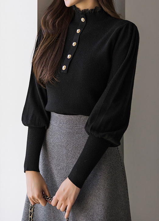 볼드한 진주버튼으로 포인트를 준 퍼프 니트에요 :)