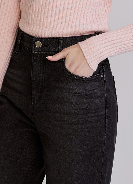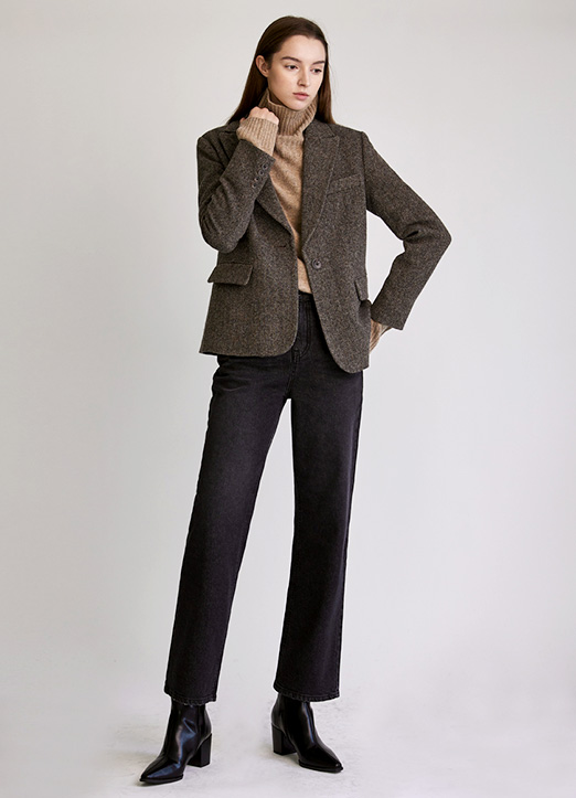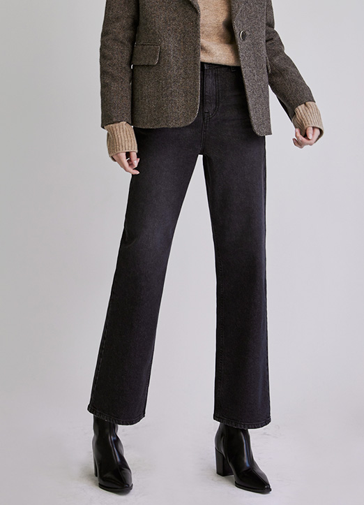 [THE ONME] 后松紧腰半宽松直筒牛仔裤