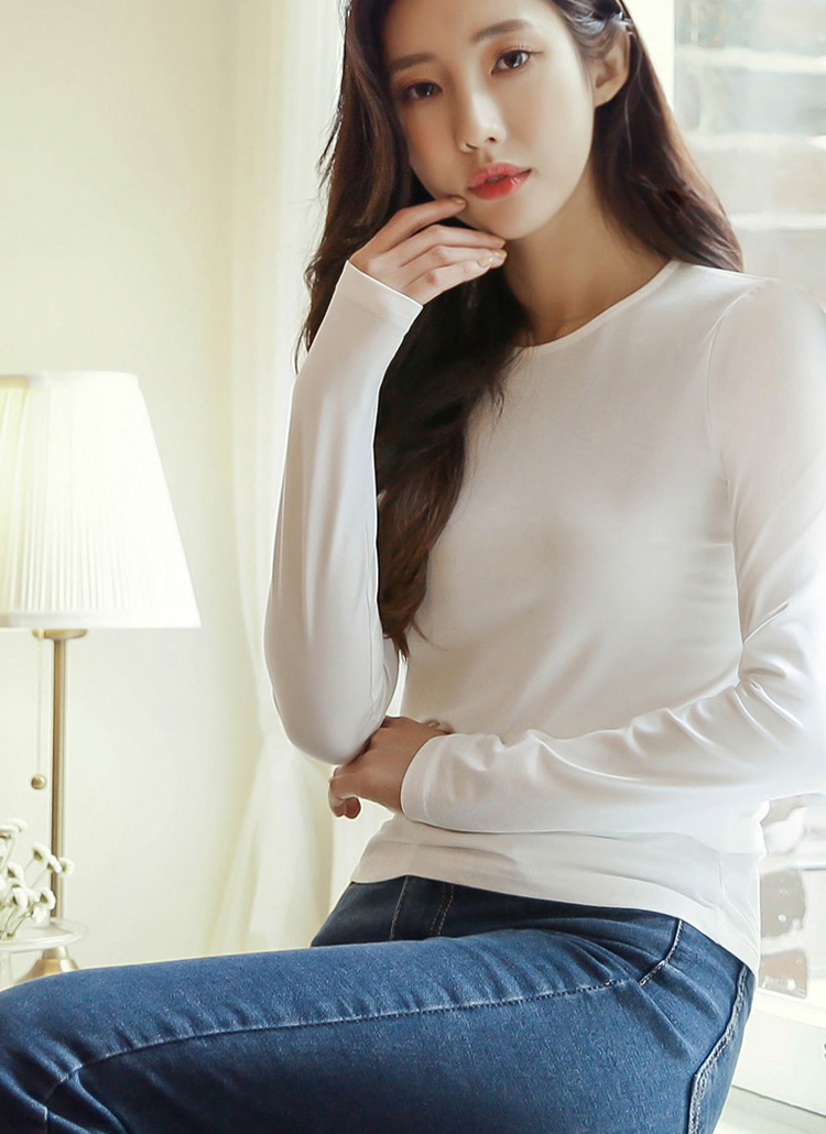라운드넥 히트텍 기본 디자인으로 니트 블라우스