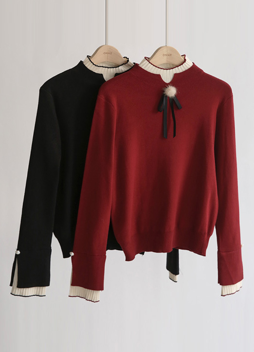 넥라인과 소맷단에 배색을 주어