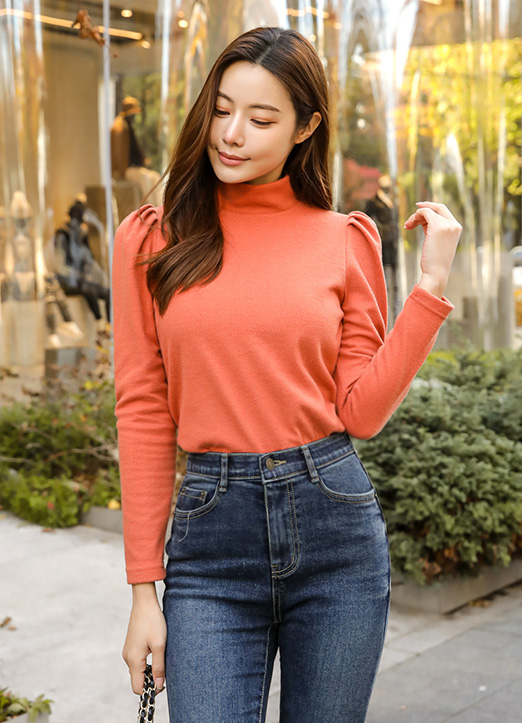 [Louis Angel] 加厚半高领泡泡袖T恤